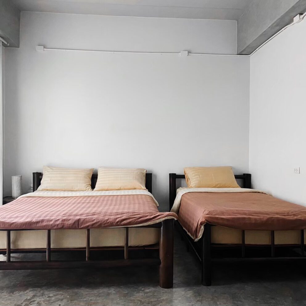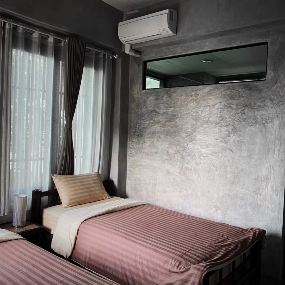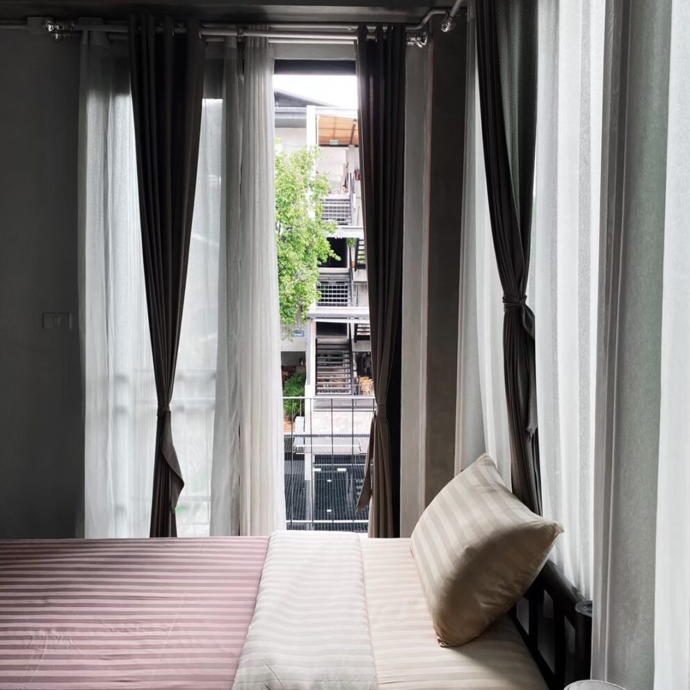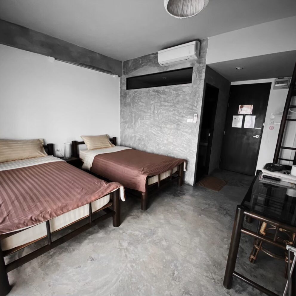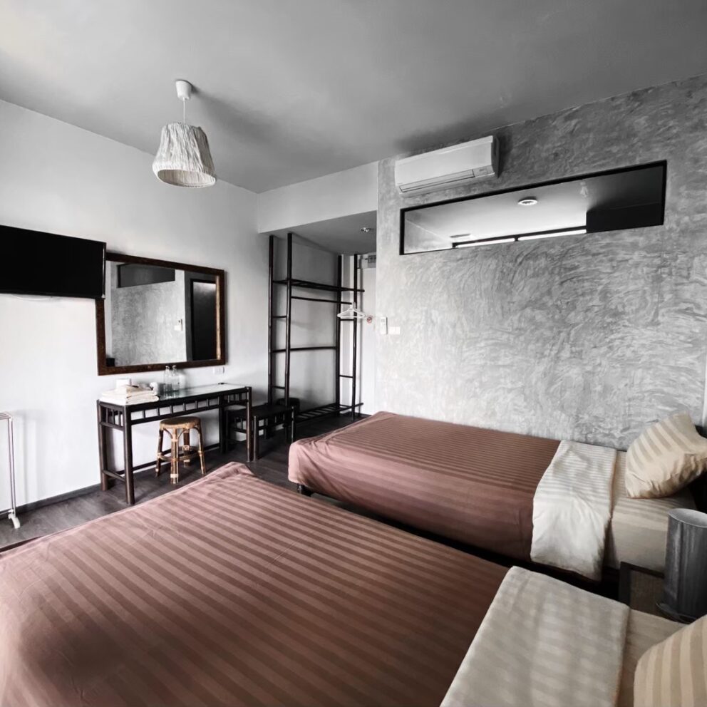 These rooms were designed with loft style and very bright; spacious – they are available with either twin or 2 single beds. Room size is 20 sqm. excluding 4.5 sqm. balcony. The interior is made with stylish loft cement walls and minimalist furniture. Makeup mirror and chair are also included beside television set.