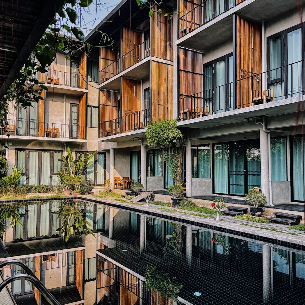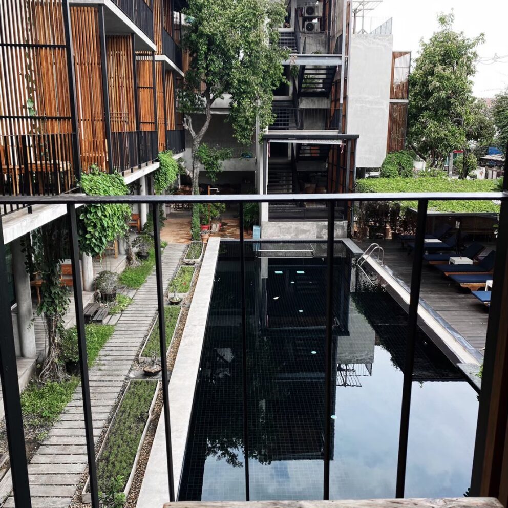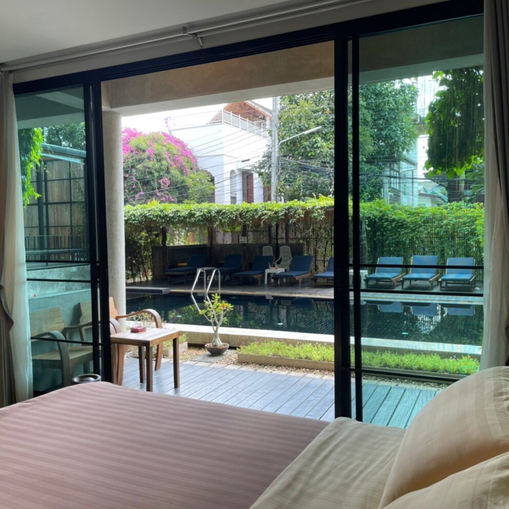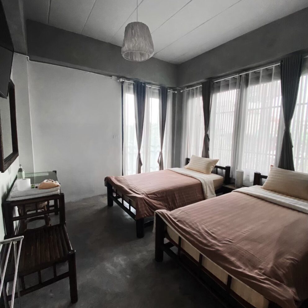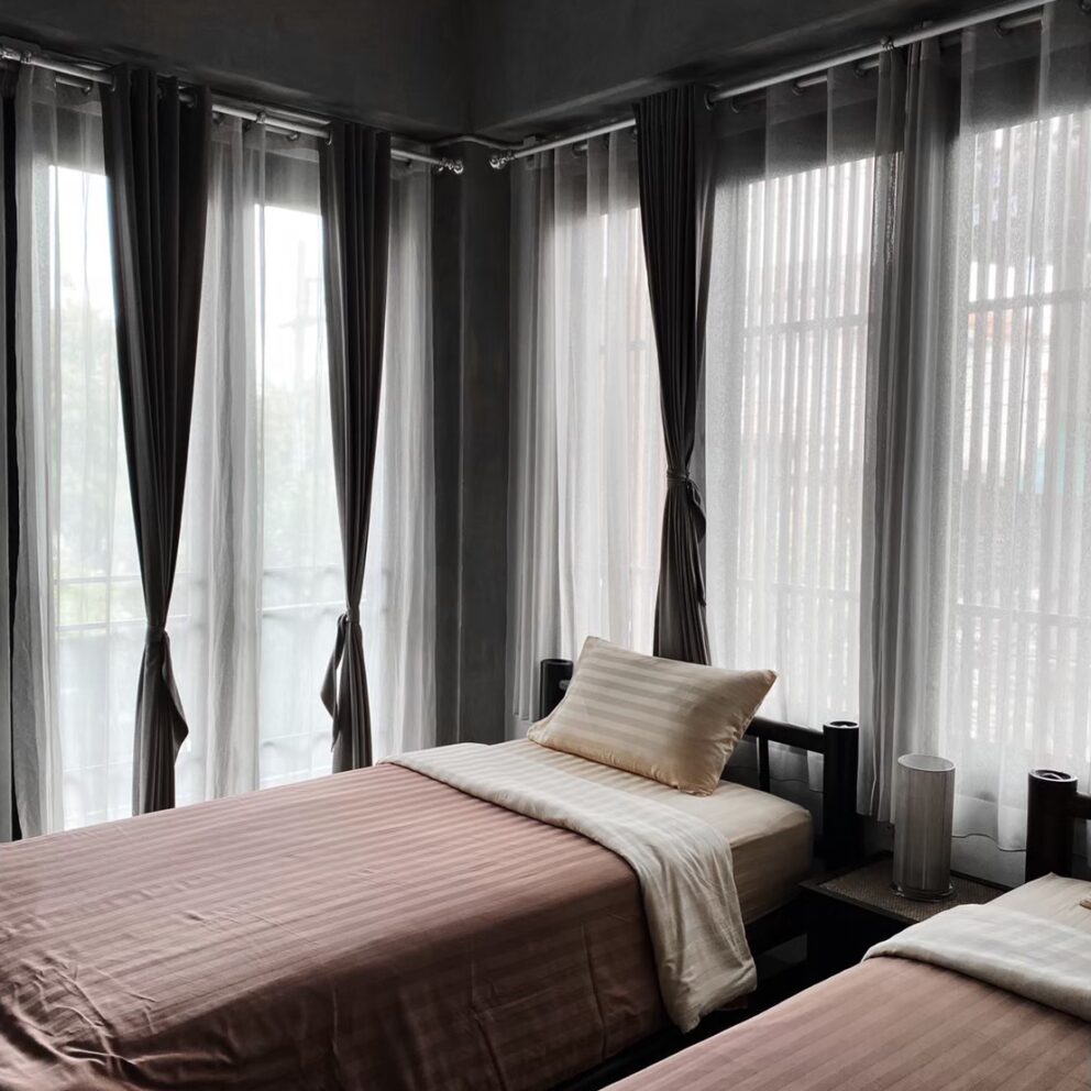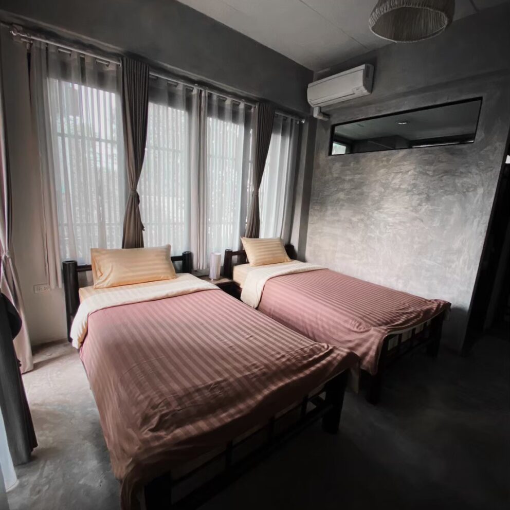 These rooms were designed with loft style and very bright; spacious – they are available with either twin or 2 single beds. Room size is 20 sqm. excluding 4.5 sqm. balcony. The interior is made with stylish loft cement walls and minimalist furniture. Makeup mirror and chair are also included beside television set.