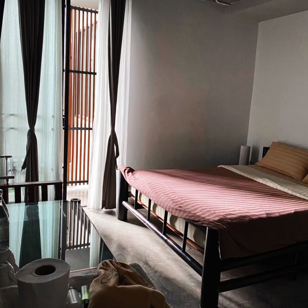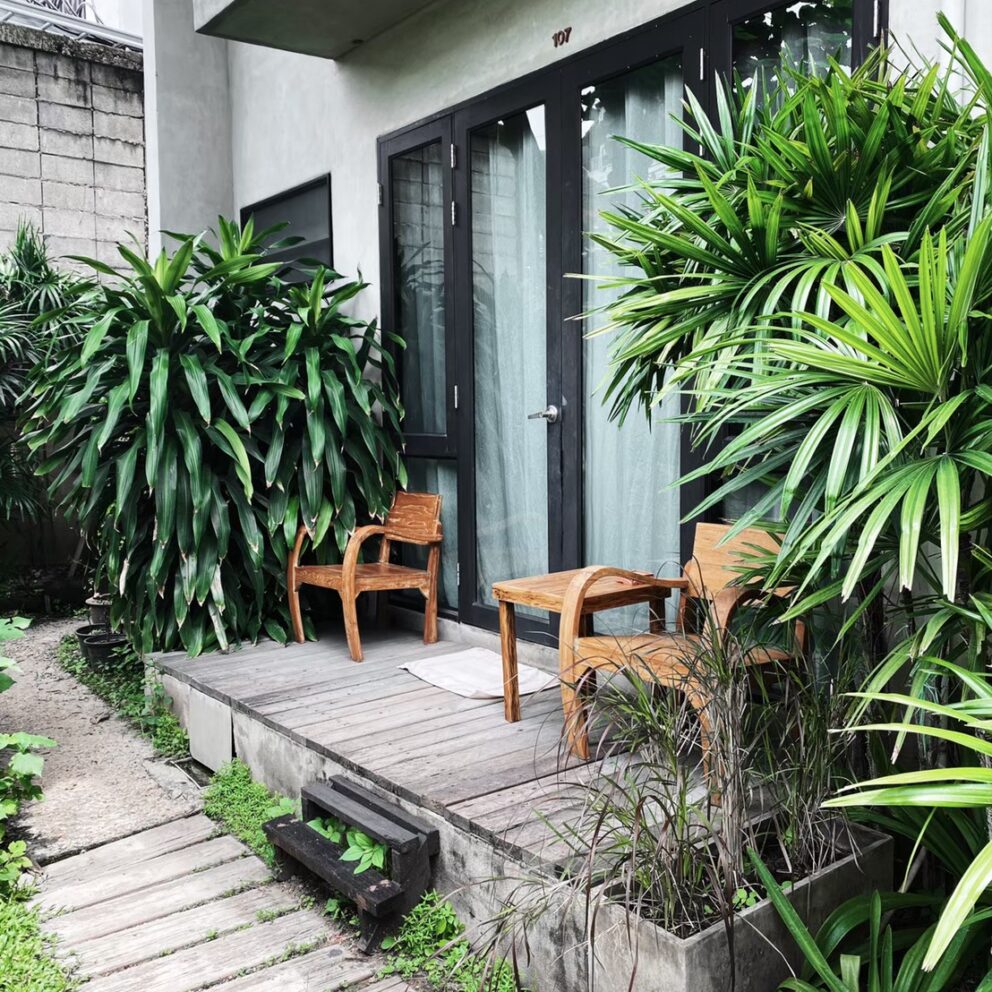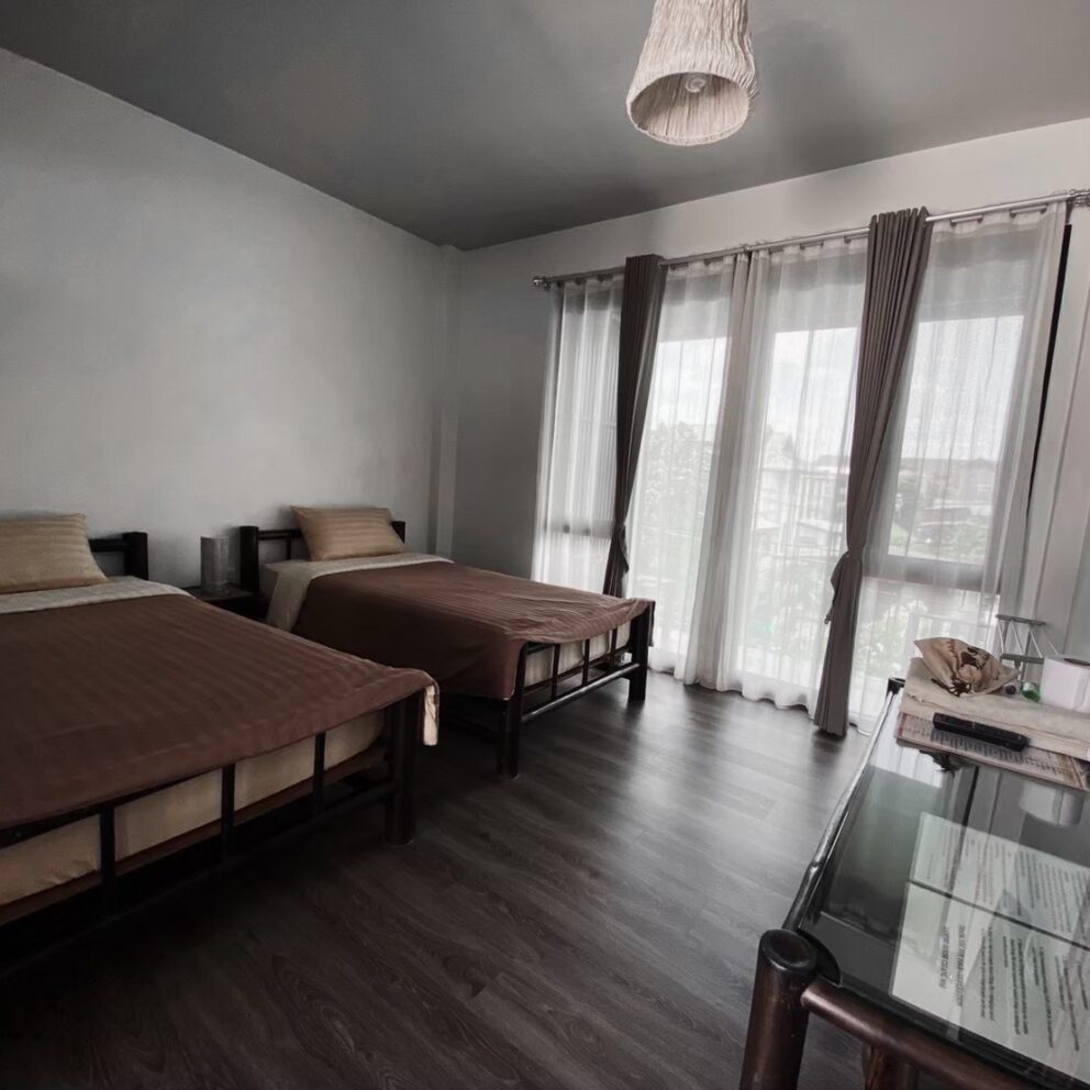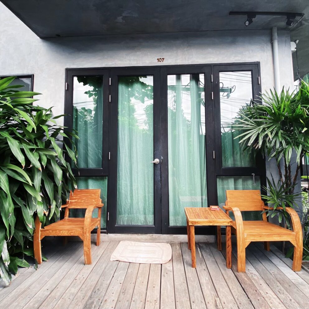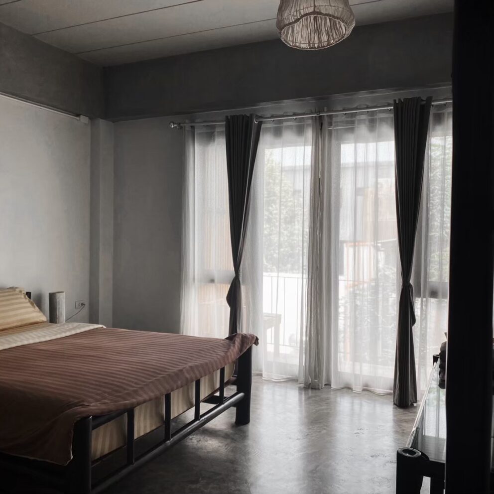 These rooms were designed with loft style and very bright & spacious but surrounded by greenery – they are queen bed and single bed. Room sizes is 21.50 sqm. excluding 2.30 sqm. terrace. The interior is made with loft cement walls and minimalist furniture. Makeup mirror and chair are also included nearby the television set.