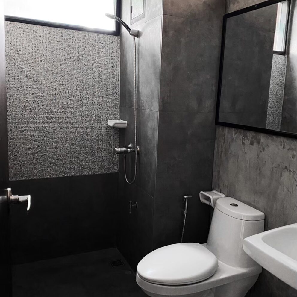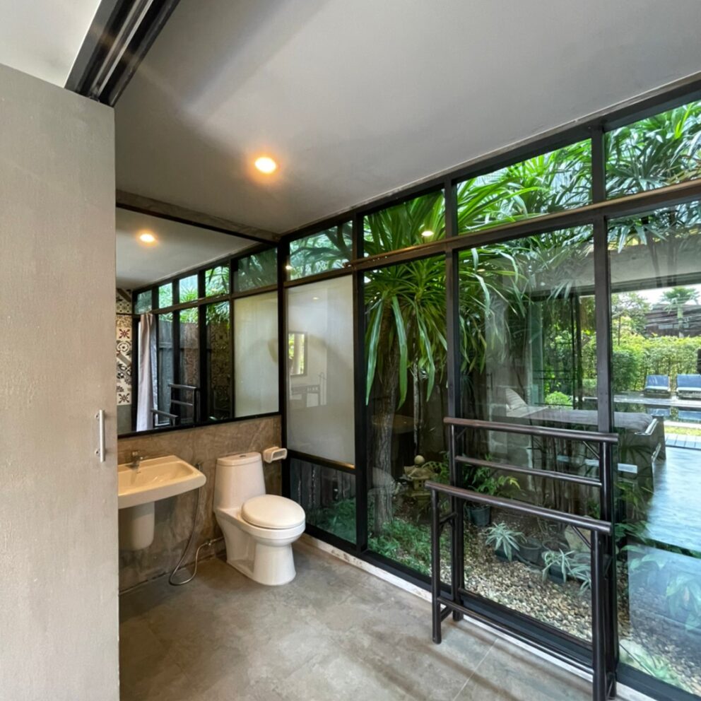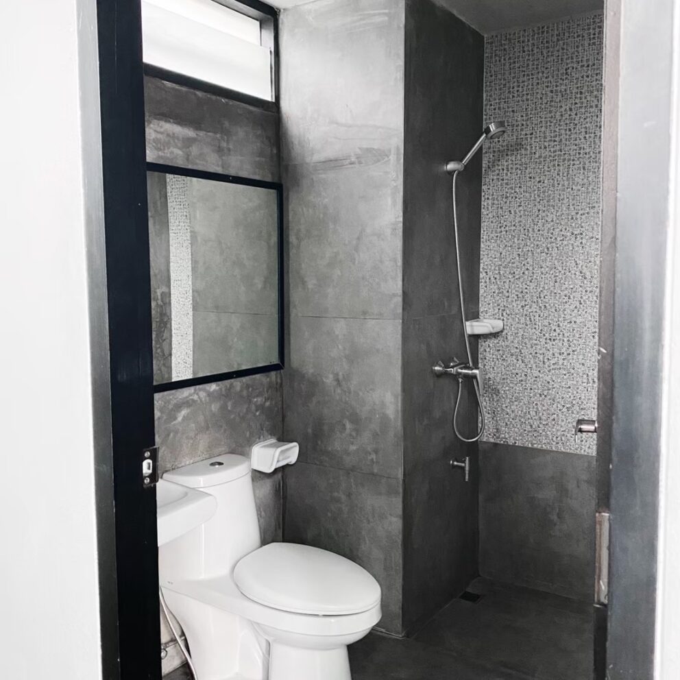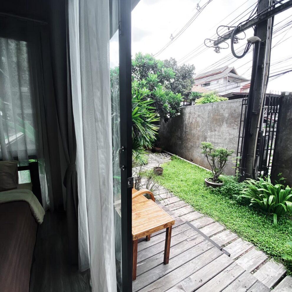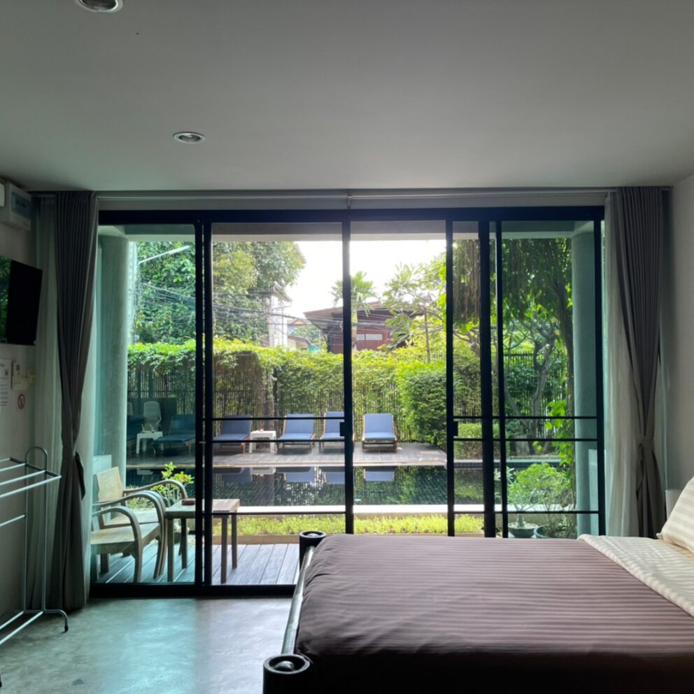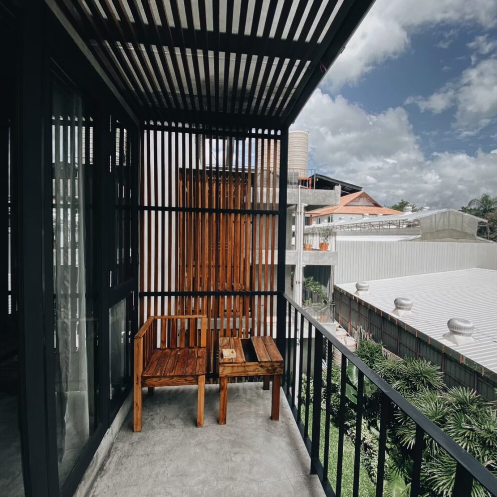 These rooms were designed with loft style and very bright & spacious but surrounded by greenery – they are queen bed and single bed. Room sizes is 21.50 sqm. excluding 2.30 sqm. terrace. The interior is made with loft cement walls and minimalist furniture. Makeup mirror and chair are also included nearby the television set.