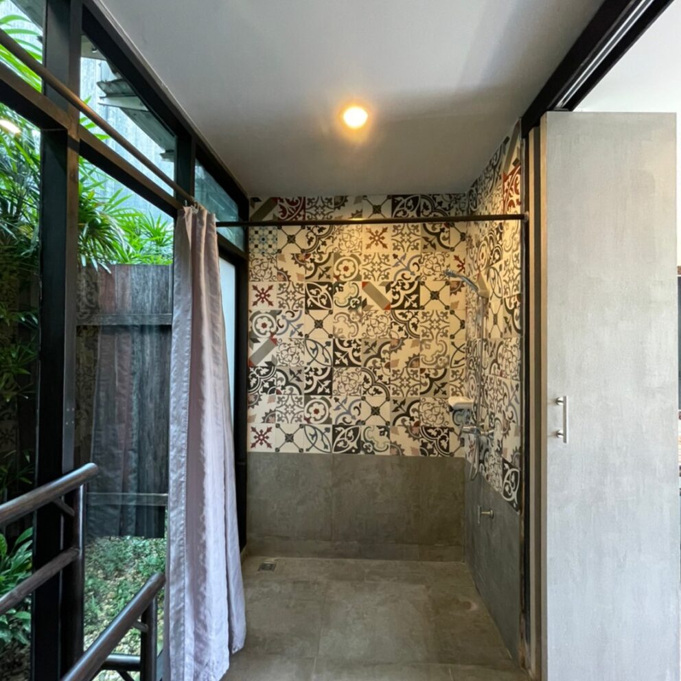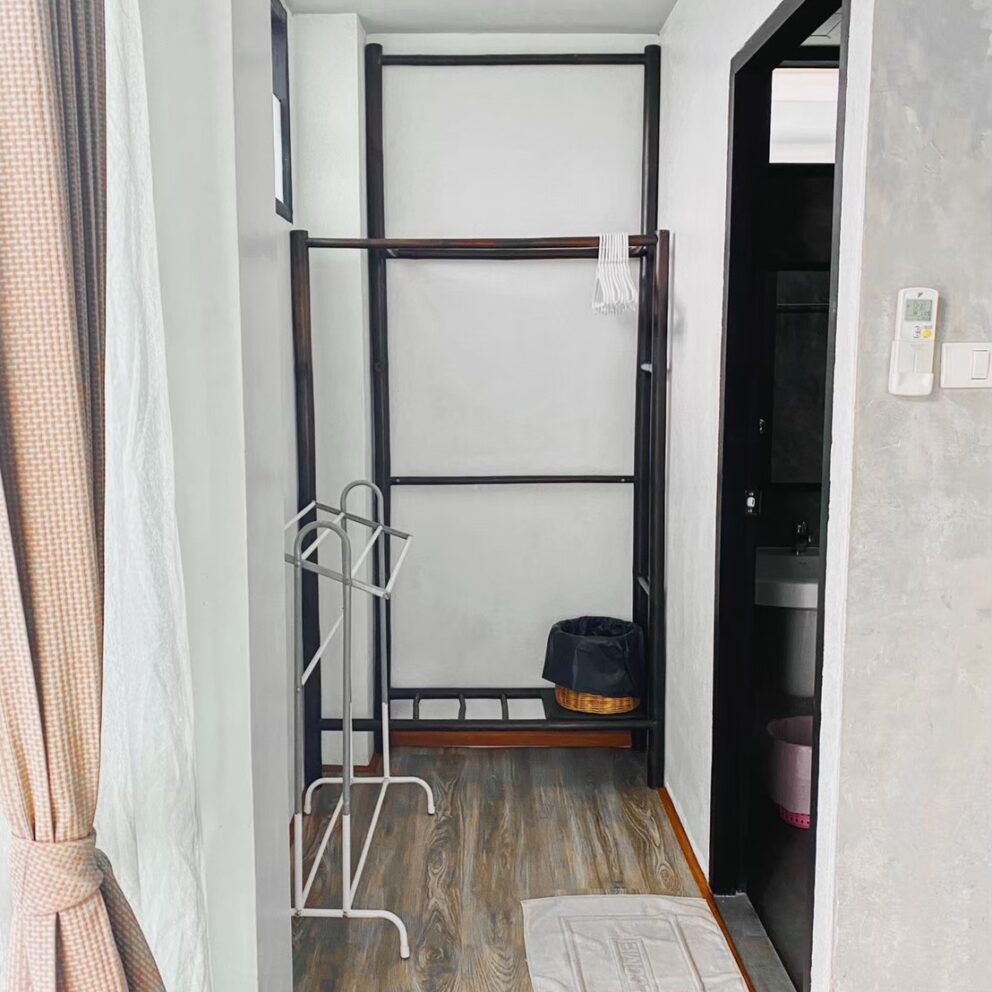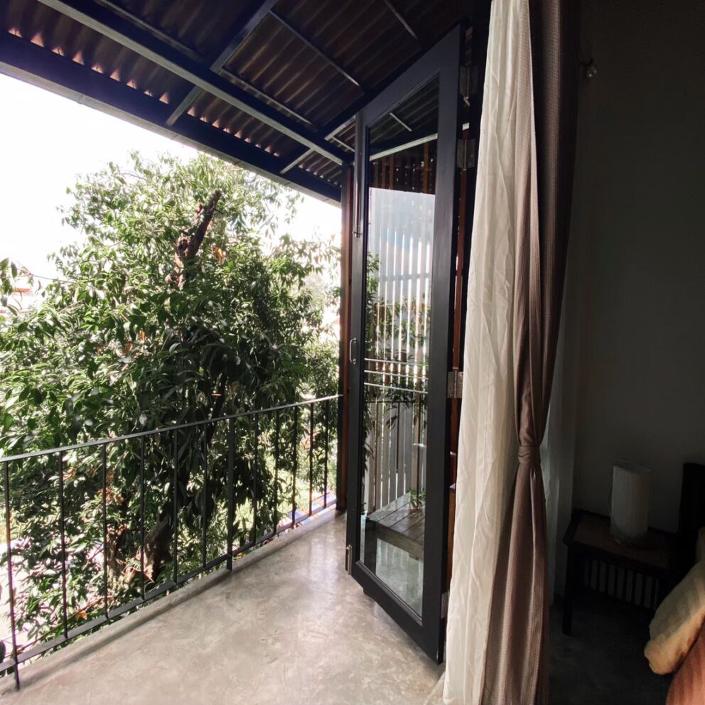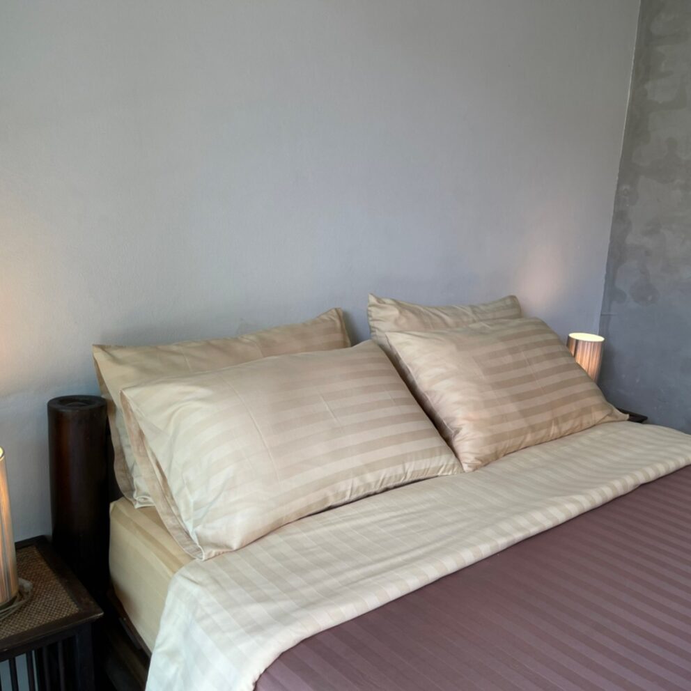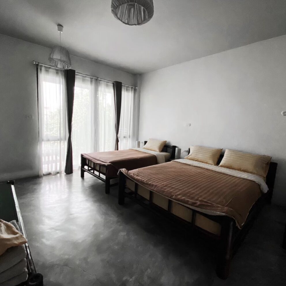 These rooms were designed with loft style and very bright & spacious but surrounded by greenery – they are double or queen beds. Room sizes is 20 sqm. excluding 6 sqm. terrace. The interior is made with loft cement walls and minimalist furniture. Makeup mirror and chair are also included nearby the television set.
