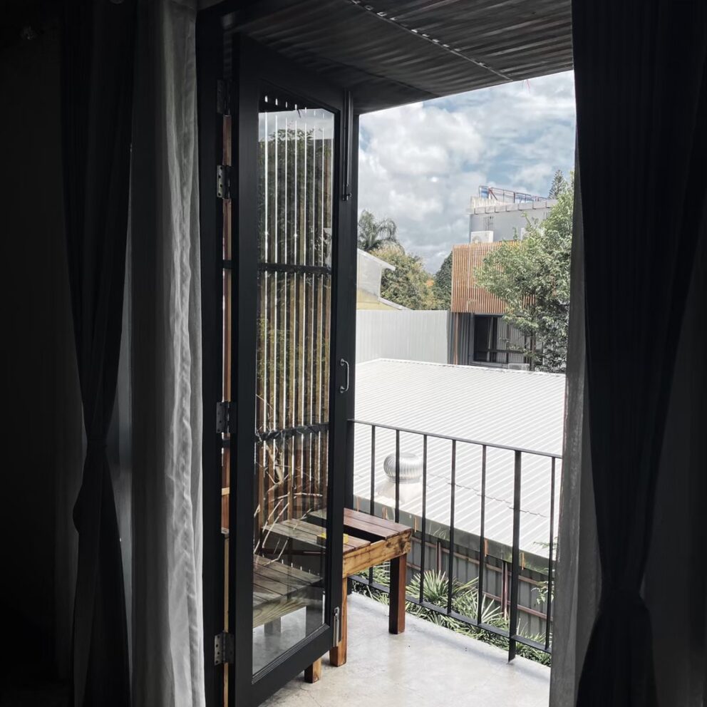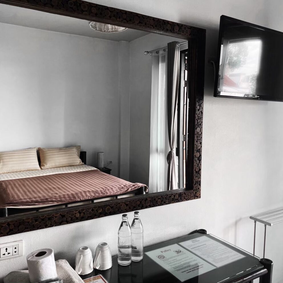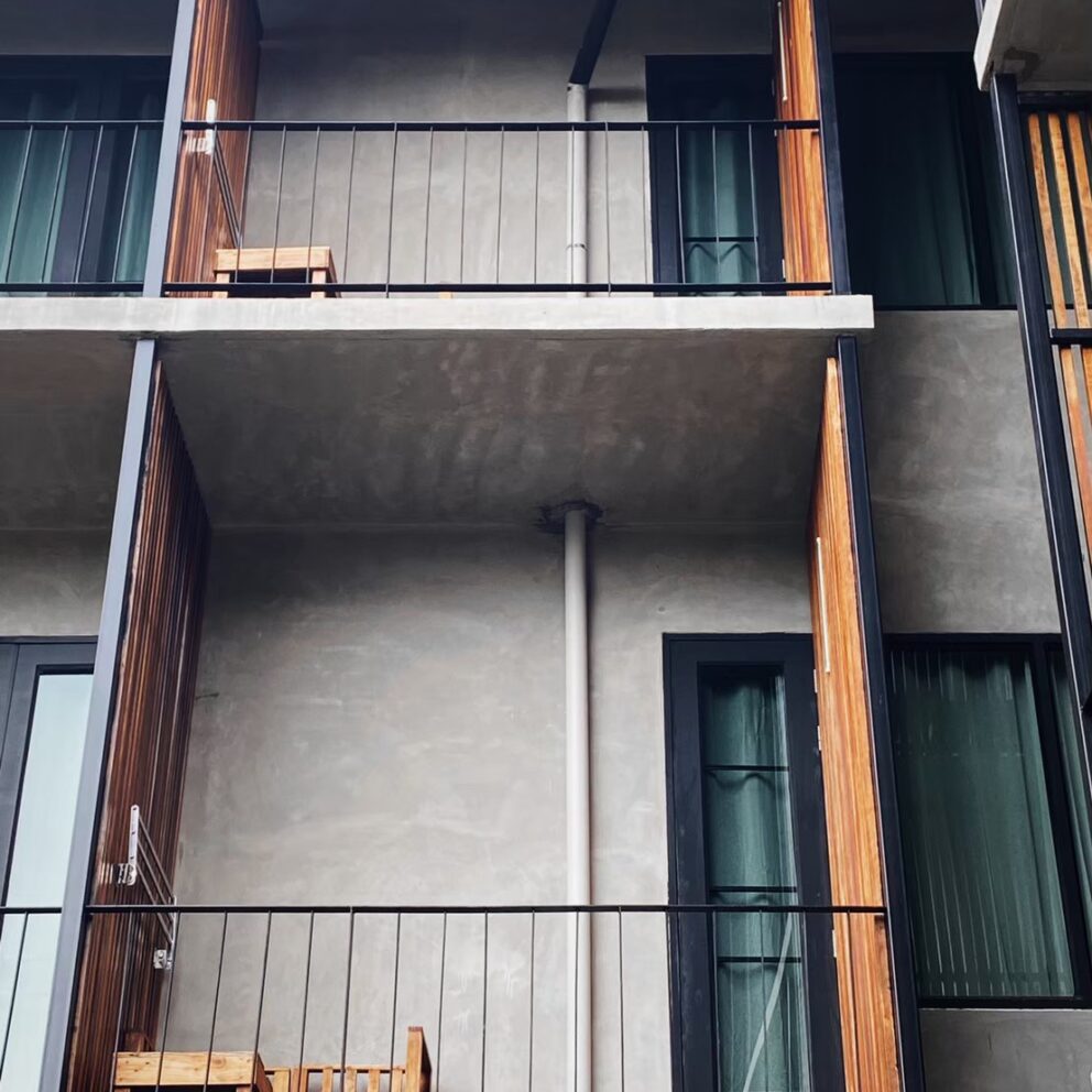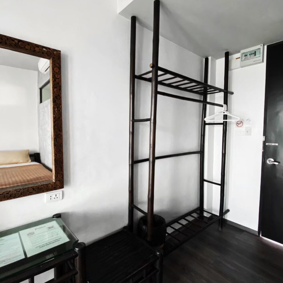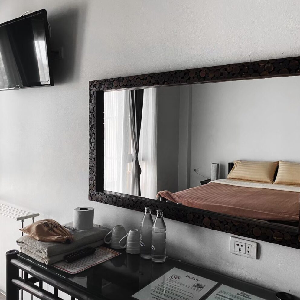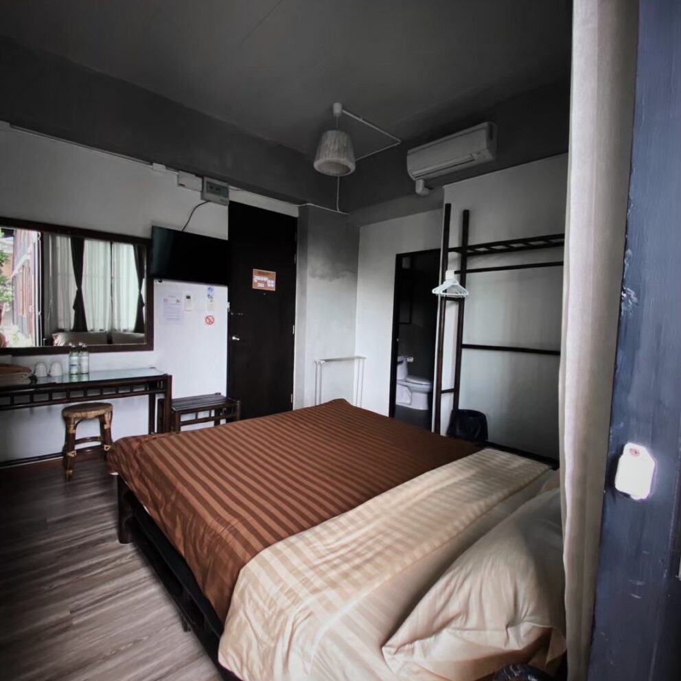 These rooms were designed with loft style and very bright; spacious – they are available with either double or queen beds. Room size is 16.5 sqm. excluding 1.5 sqm. balcony. The interior is made with stylish loft cement walls and minimalist furniture. Makeup mirror and chair are also included beside television set.