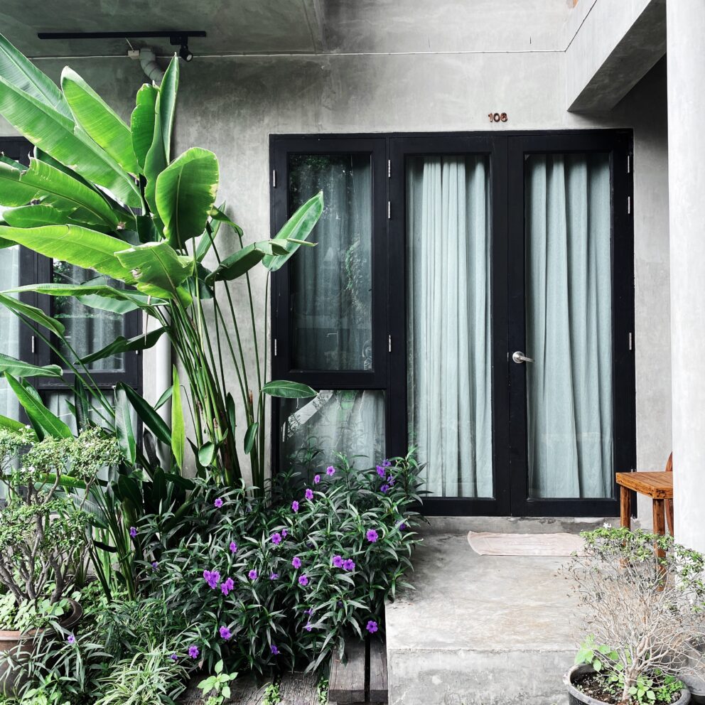 These rooms were designed with loft style and very bright & spacious but surrounded by greenery – they are twin or two single beds. Room sizes is 18.50 sqm. excluding 4.50 sqm. terrace. The interior is made with loft cement walls and minimalist furniture. Makeup mirror and chair are also included nearby the television set.